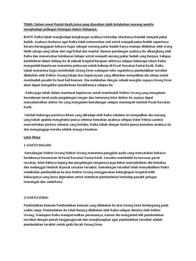 Tema novel pantai kasih ialah ketabahan hati seorang wanita menghadapi pelbagai rintangan dalam menempuh kehidupnya. Nota novel pantai kasih. Novel ini menceritakan raiha seorang doktor muda yang terpaksa melalui pelbagai bentuk cabaran sebelum.